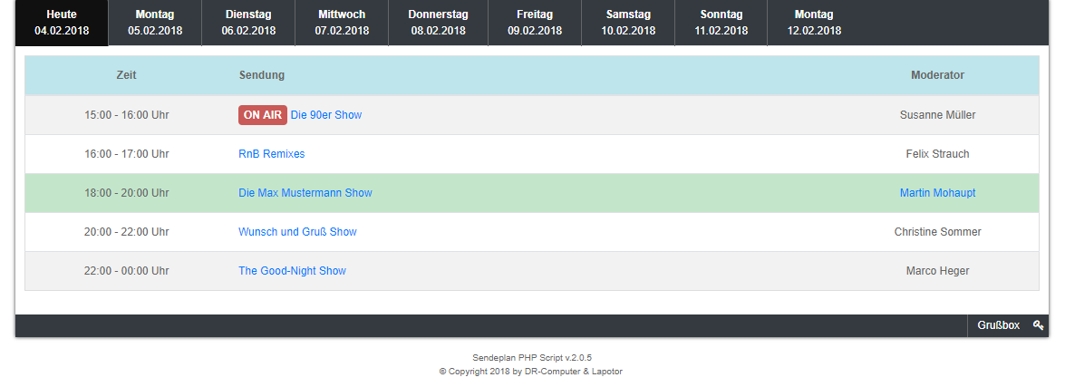 Sendeplan PHP Script 2.0.1 (30. Januar 2018)