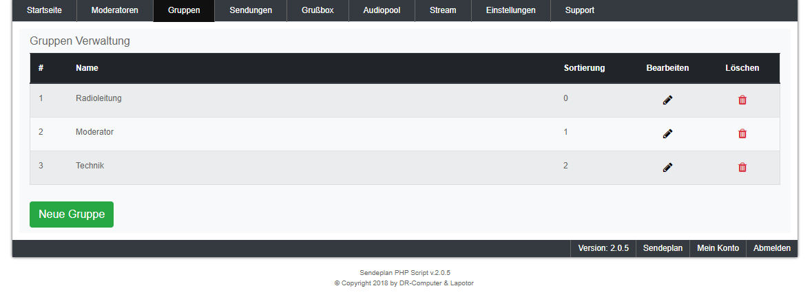 Sendeplan PHP Script 3.0.0 (27. Januar 2019)