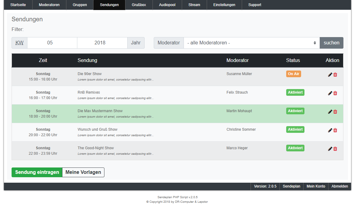 Eine einfache Übersicht zeigt dir im internen Bereich welche Sendeplätze bereits vergeben sind. -