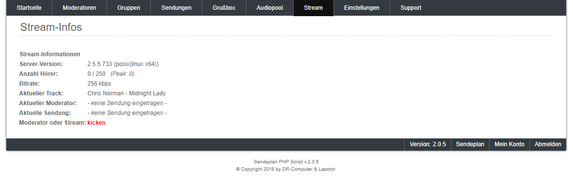 Kicke den Auto-DJ oder Moderator über den internen Bereich. -