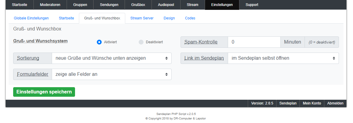 Empfange Wünsche- und Grüße über die Administrationsoberfläche. -