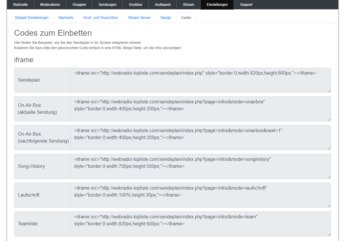 Durch die Einbindung via iFrame kann der Sendeplan in jedes CMS problemlos eingebunden werden wie z.B. WordPress, Joomla, PHP-Fusion, Woltlab & Co!