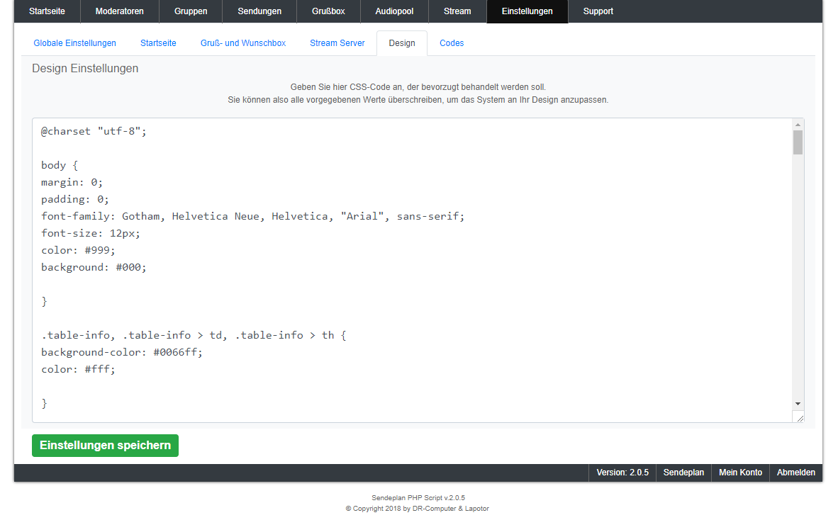 Über die Administrationsoberfläche kannst du das Script nach eigenen Wünschen optisch verändern und anpassen. CSS-Kenntnisse sind nötig. -